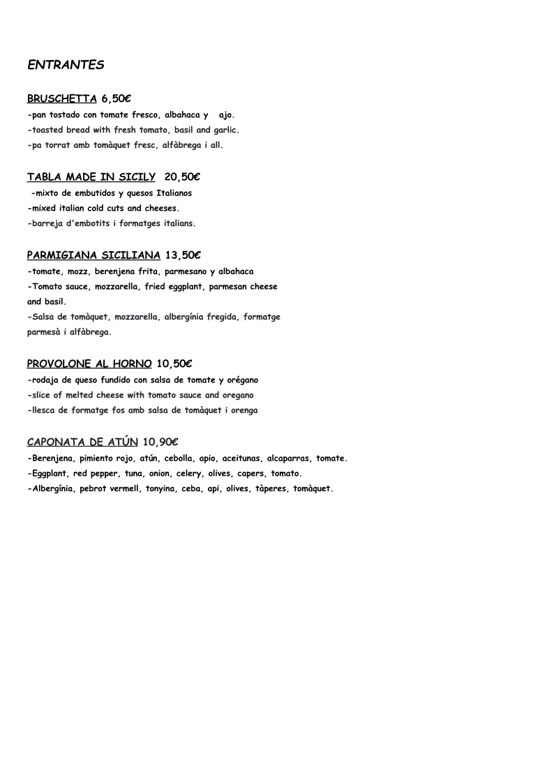 Welcome to "Made In Sicily," nestled in the heart of Barcelona's Ciutat Vella. This culinary gem embraces the vibrant flavors and traditions of Sicily with an enticing menu that promises to delight your palate.